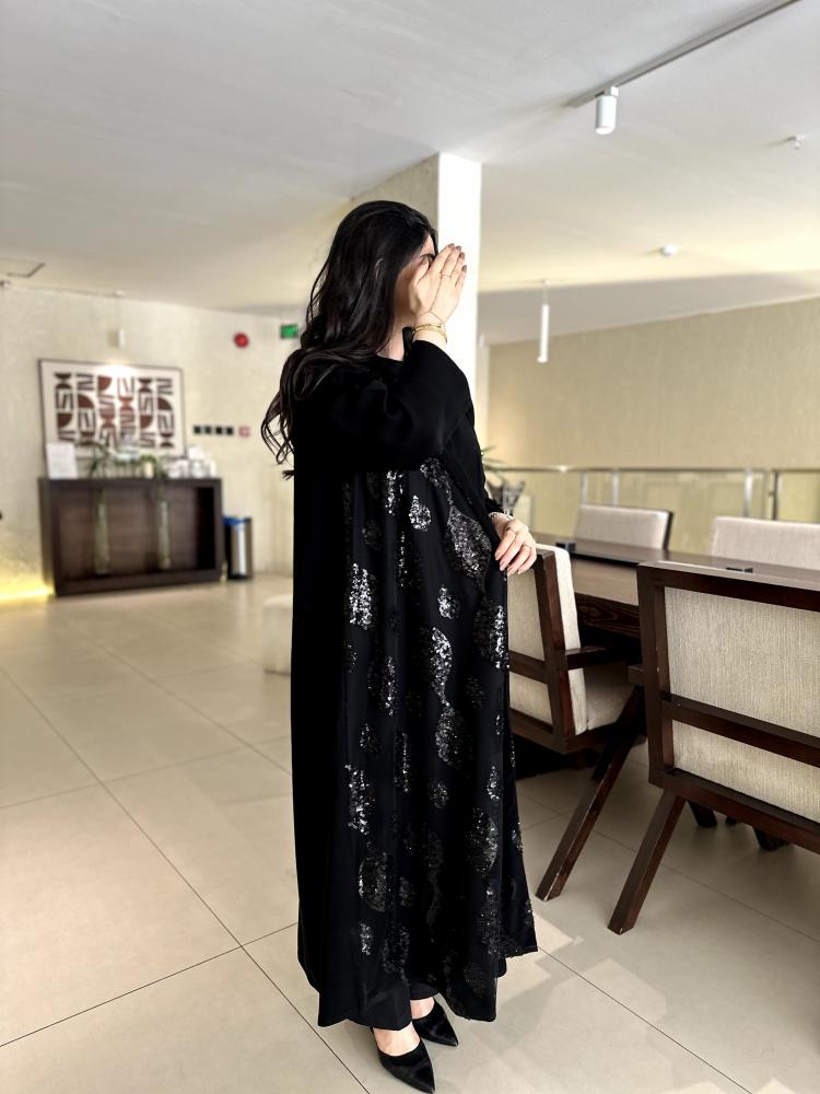 عباية تالا قماش باربي مع شكماش ملكي ودنتل جانبي،