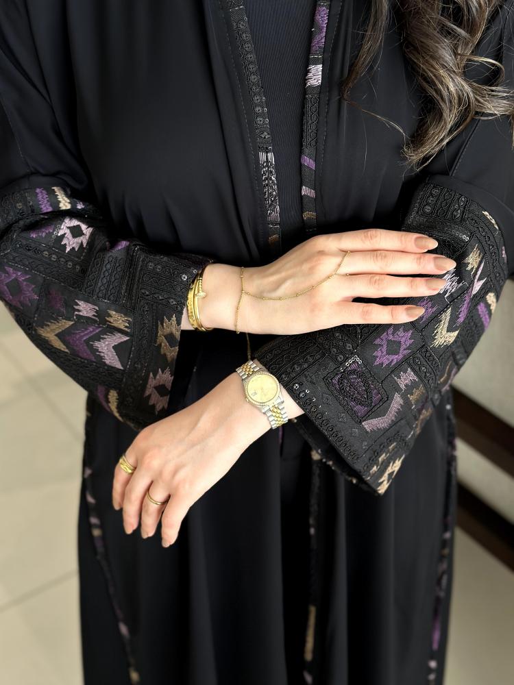 عباية وداد دانتيل على الكم والجوانب تحديد فاخرة بتفاصيل أنيقه